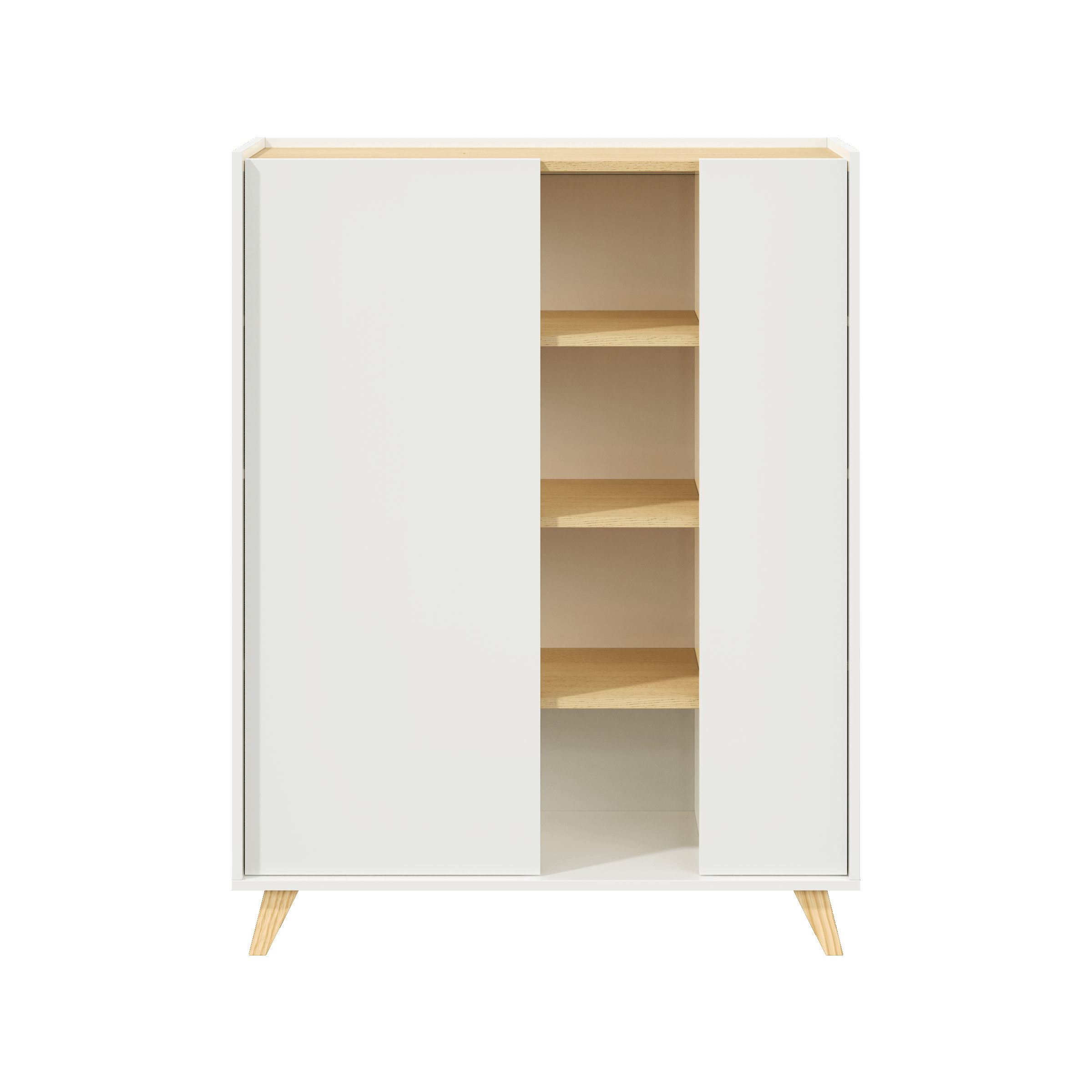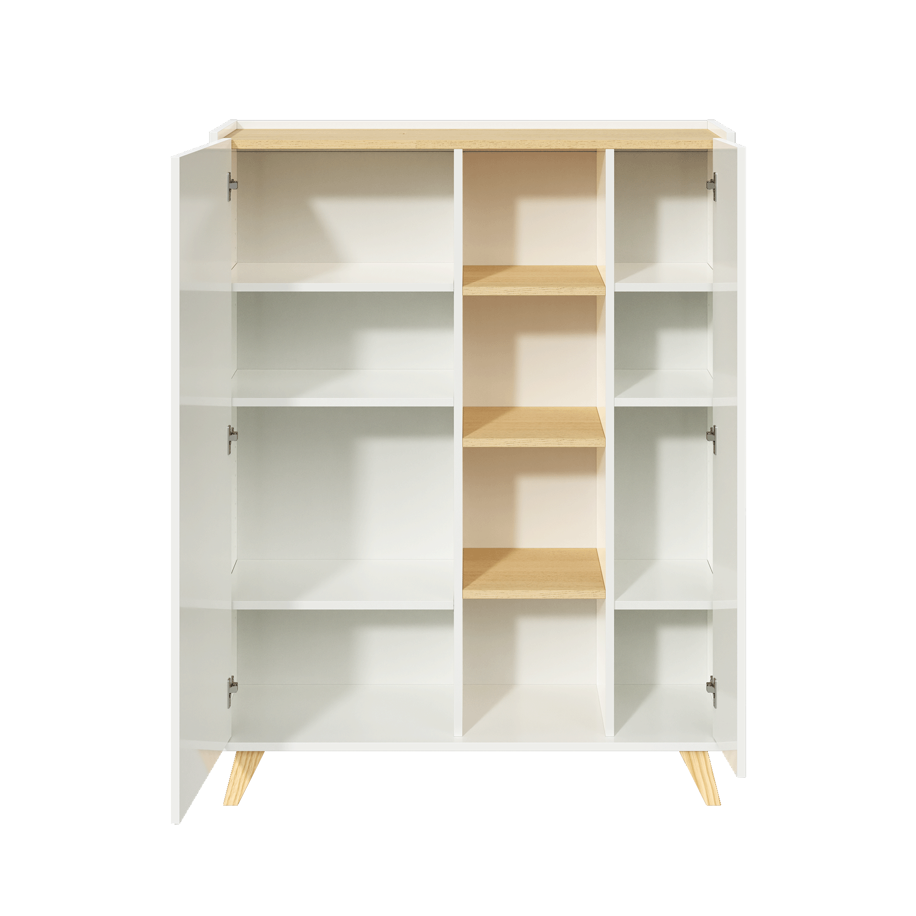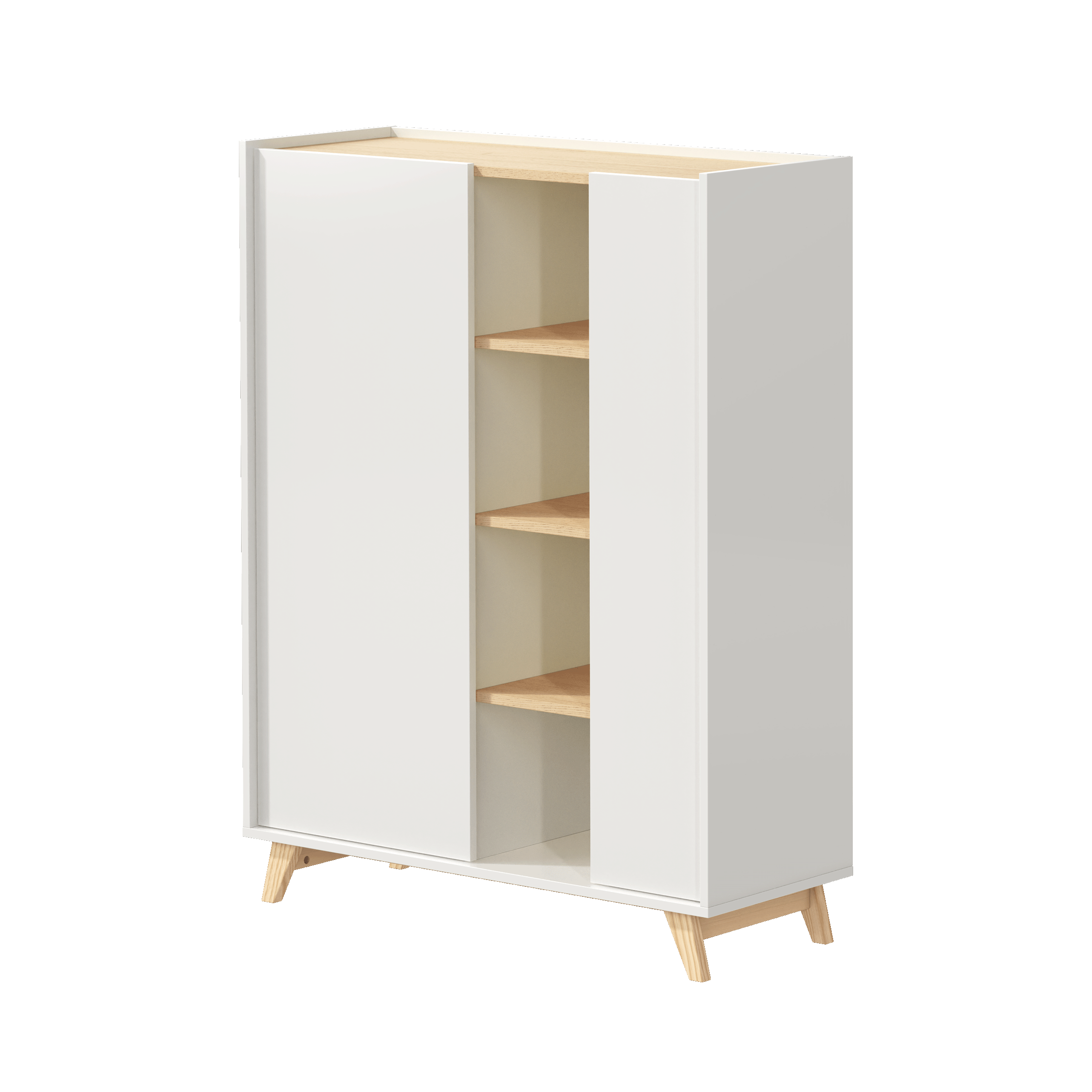 - Os dois compartimentos com porta facilitam a arrumação, enquanto as prateleiras permitem destacar as suas peças decorativas favoritas.
