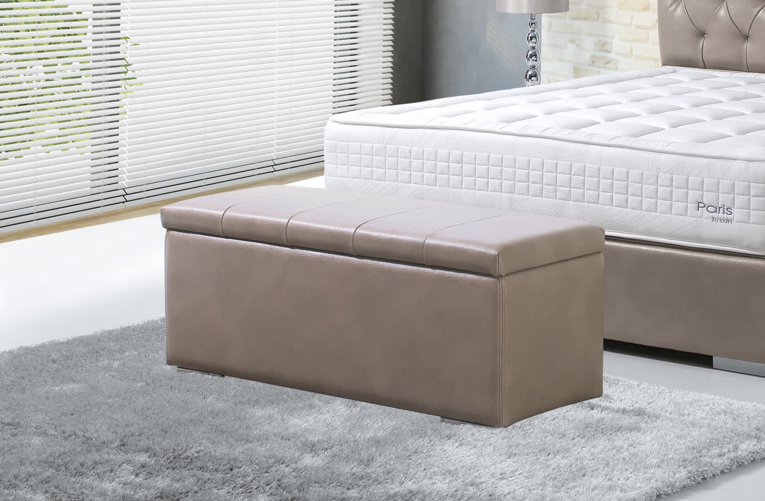 Banqueta de linhas simples e elegantes que complementa a decoração da sua sala de estar, hall de entrada ou quarto. Proporciona ainda um extra de arrumação no baú com tampa. Disponível em tecido.