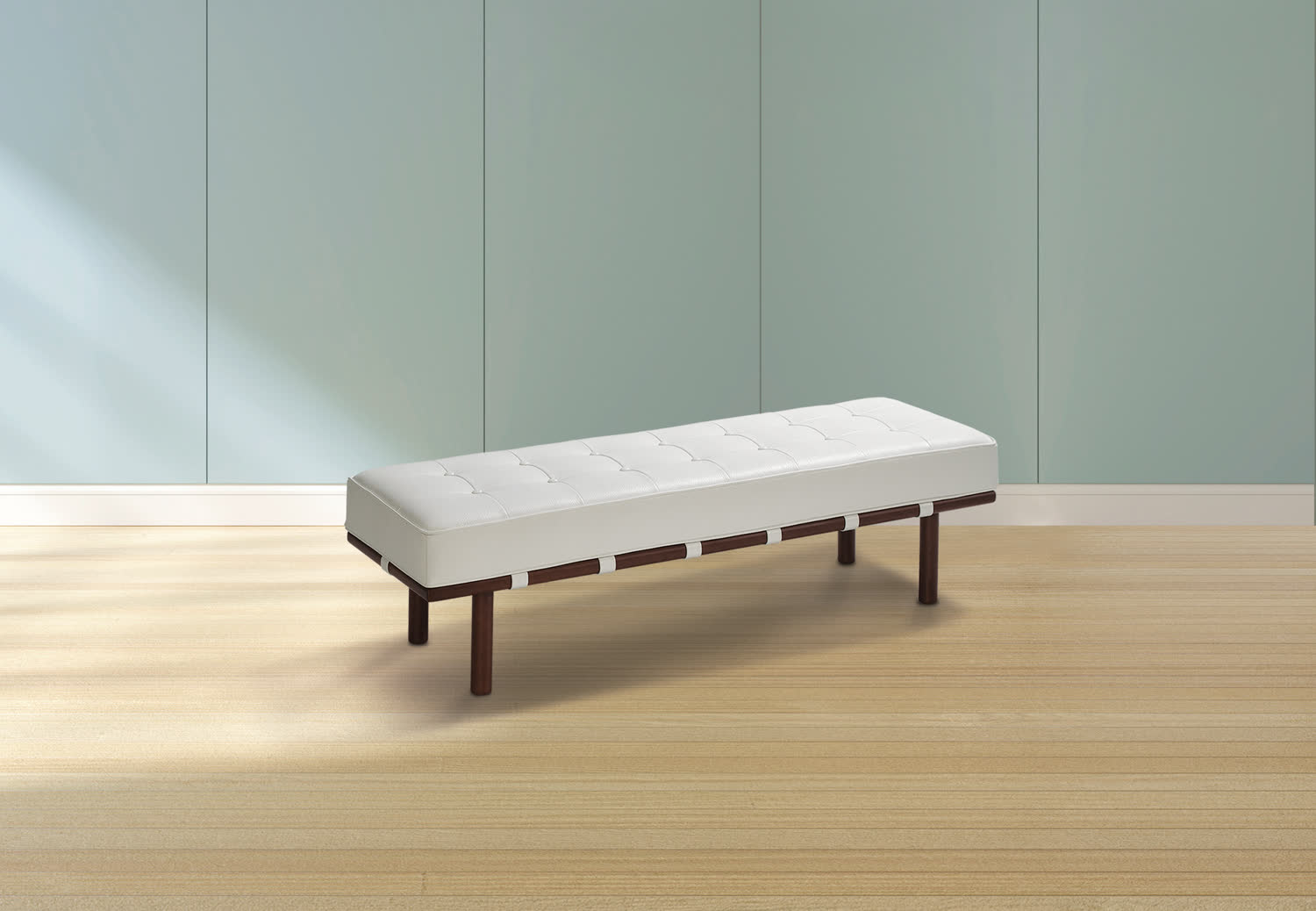 Modelo clássico, com efeito capitonê, para um toque de requinte na decoração da sua sala de estar, hall de entrada ou quarto. Disponível em tecido. Pés disponíveis em wengué, nogueira, branco e cerejeira.