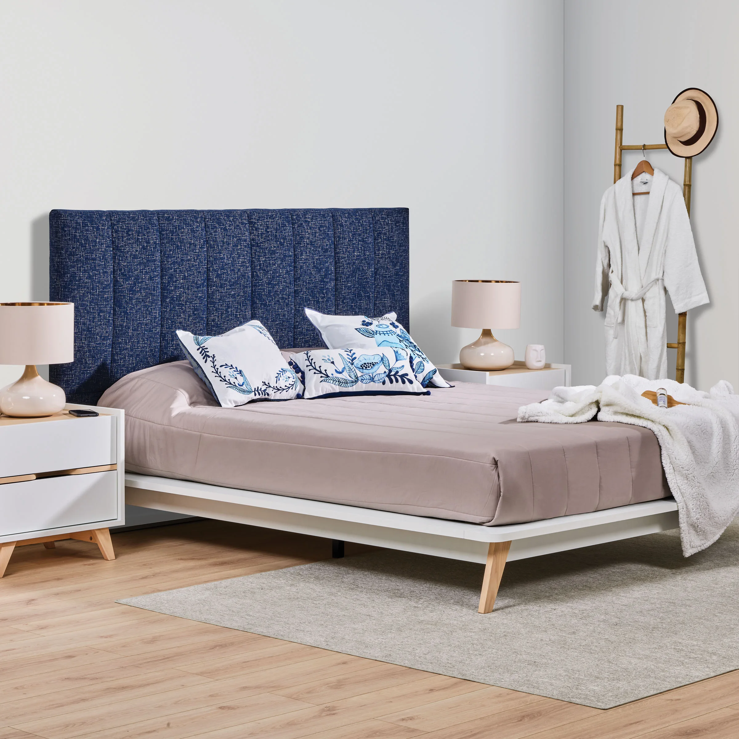 - Pode ser usada em conjunto com a cabeceira estofada Ibiza ou com outra cabeceira estofada com uma largura superior a 176 cm.