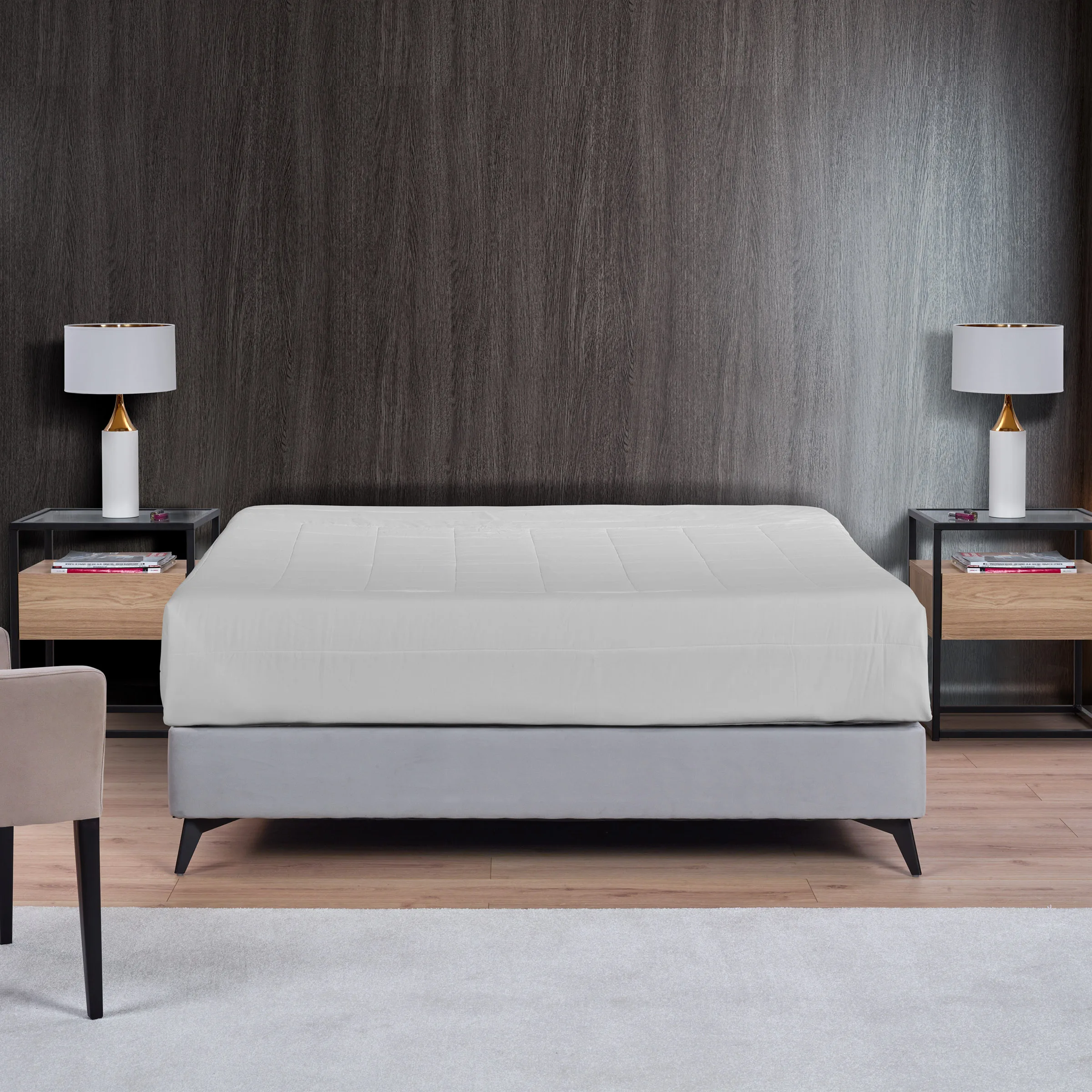 Elegante, alia o conforto da base estofada com a robustez dos pés metálicos.