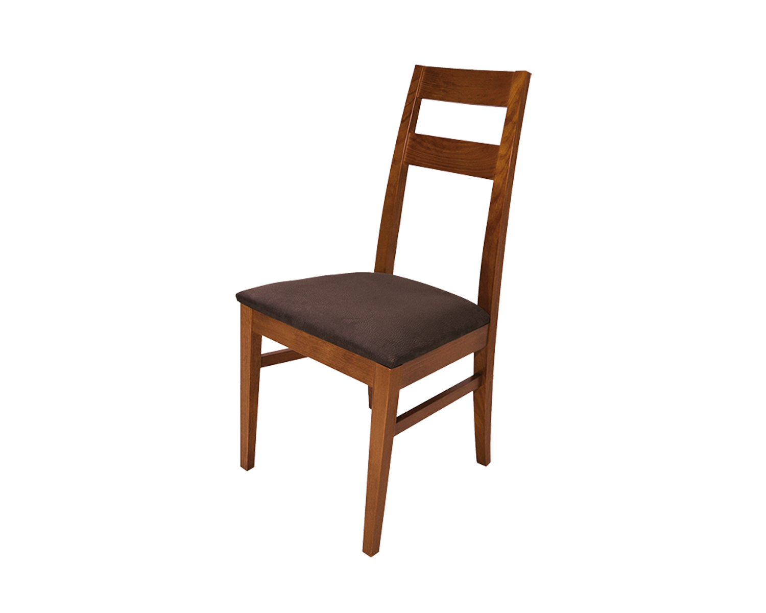 Cadeira idealizada para acompanhar a mesa de jantar da mesma gama. Completamente estofada para maior conforto, com tecido à escolha e pernas de madeira.