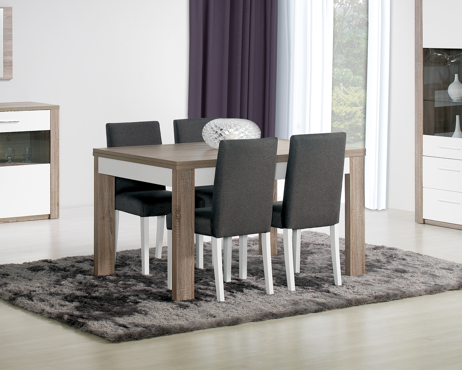 Cadeira idealizada para acompanhar a mesa de jantar da mesma gama. Completamente estofada para maior conforto, com tecido à escolha e pernas de madeira com acabamento também à escolha.