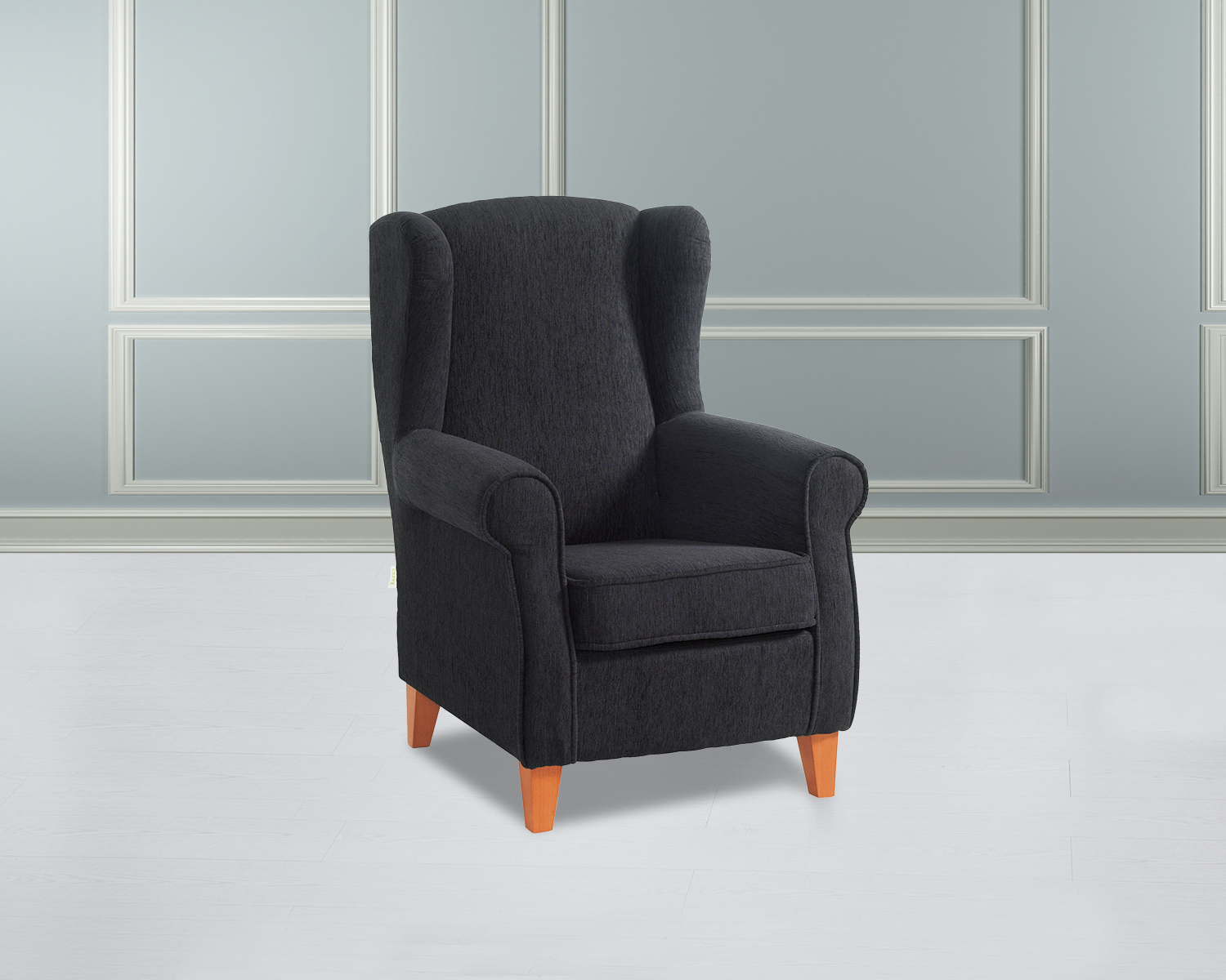 Um cadeirão de linhas clássicas que se adapta ao conforto e decoração da sua sala ou quarto. Com braços arredondados e orelhas, para maior conforto. Disponível em tecido. Pés disponíveis em wengué e cerejeira.