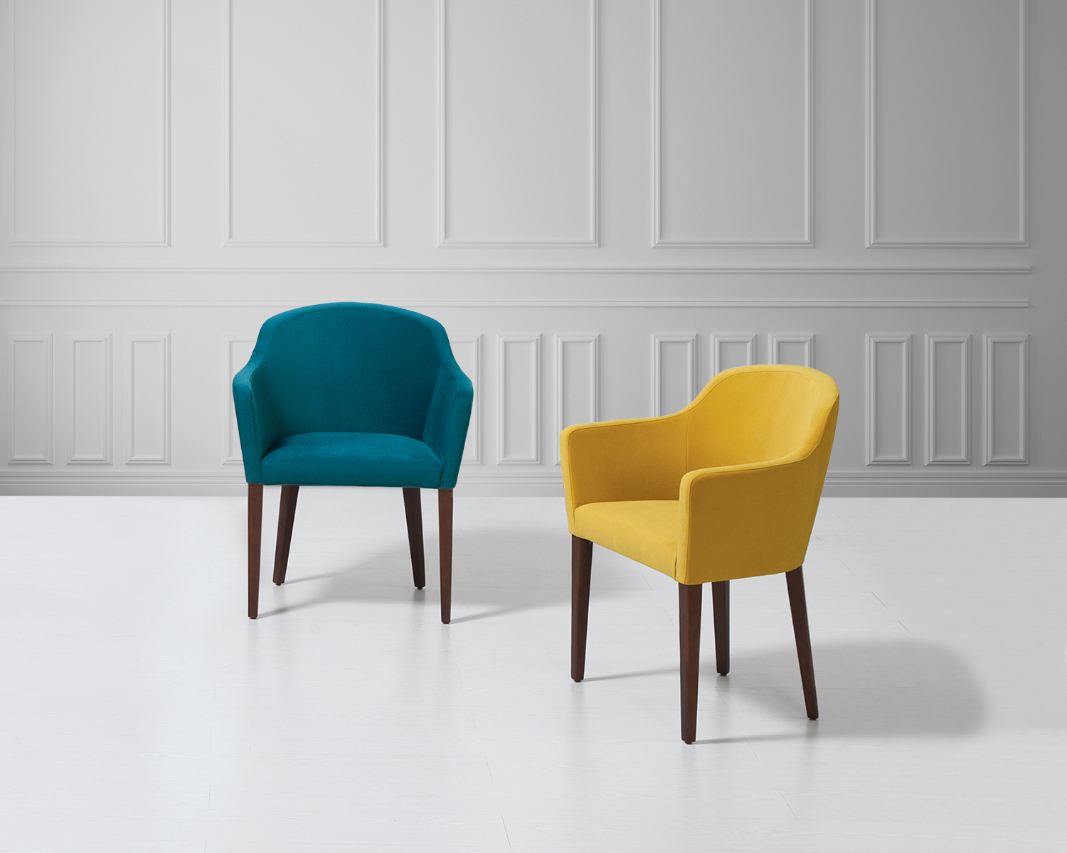 Modelo requintado, de estrutura leve e assento alto, pode ser utilizado como complemento da sua sala de estar ou do quarto. Disponível em tecido. Pés disponíveis em wengué, nogueira, branco e cerejeira.