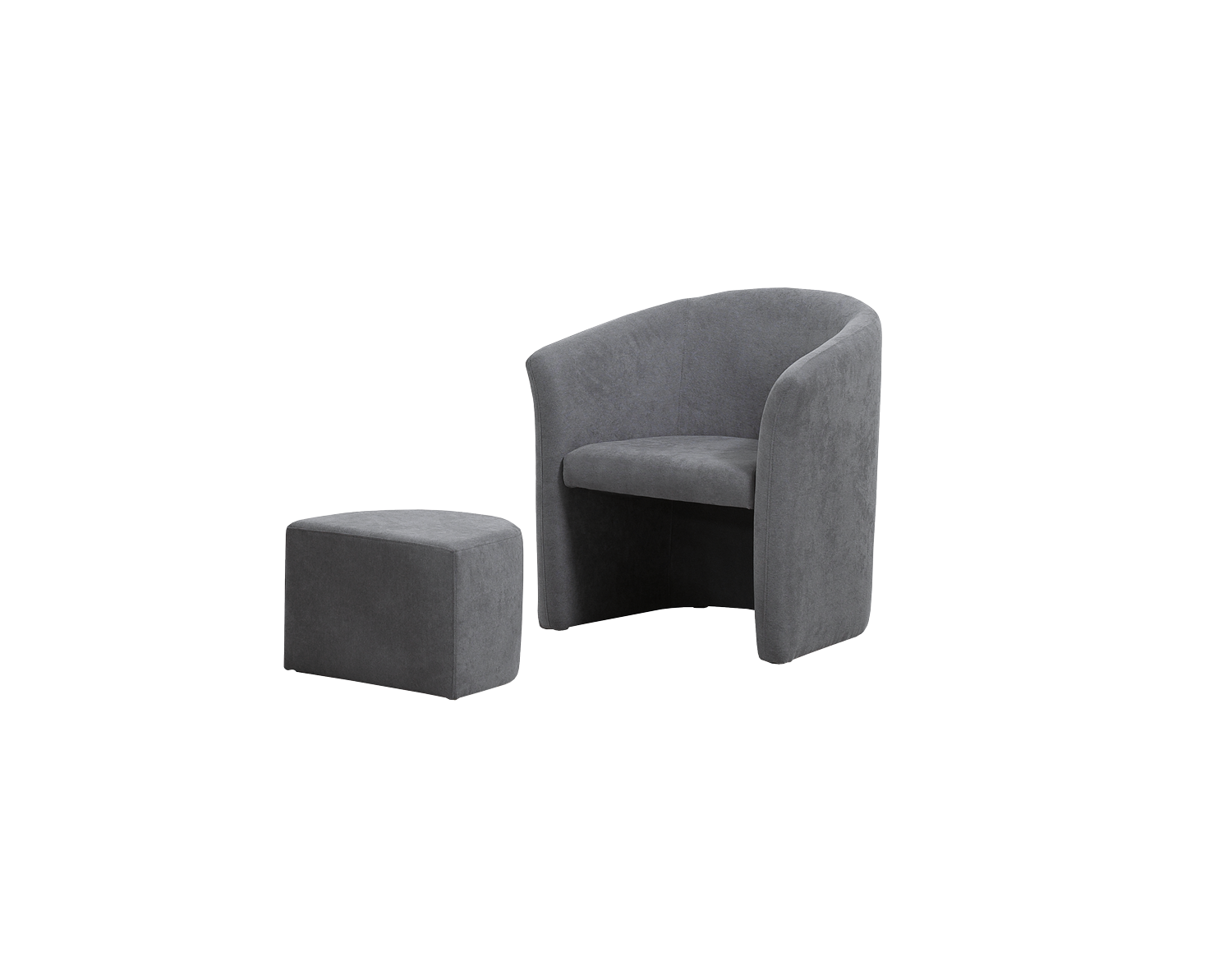 A peça ideal de conforto para a sua sala de estar ou quarto. De linhas simples, esconde debaixo do assento um puff que pode também ser utilizado como repousa-pés. Disponível em tecido.