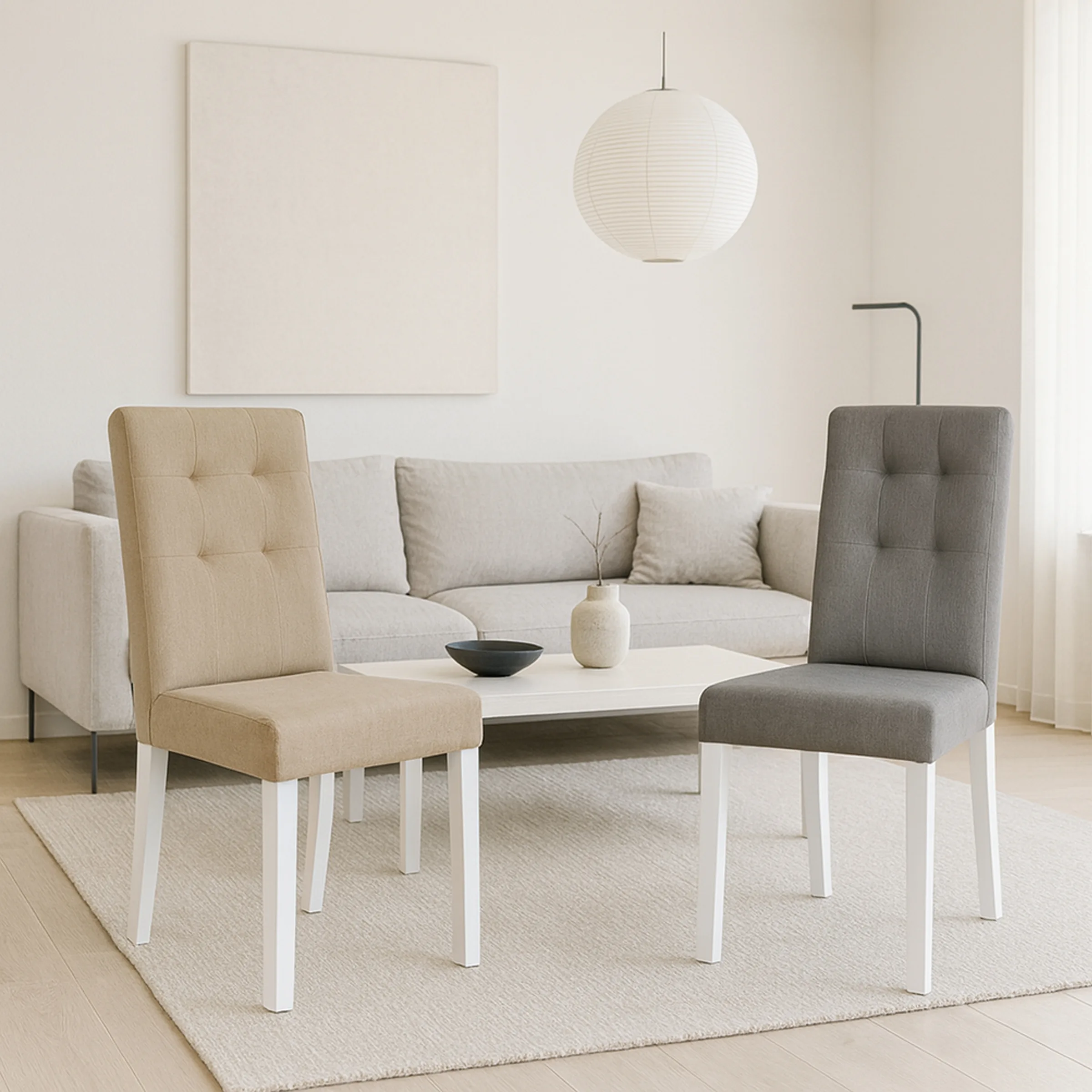 - Pernas lacadas a branco, que acrescentam um toque moderno e leve ao ambiente.
