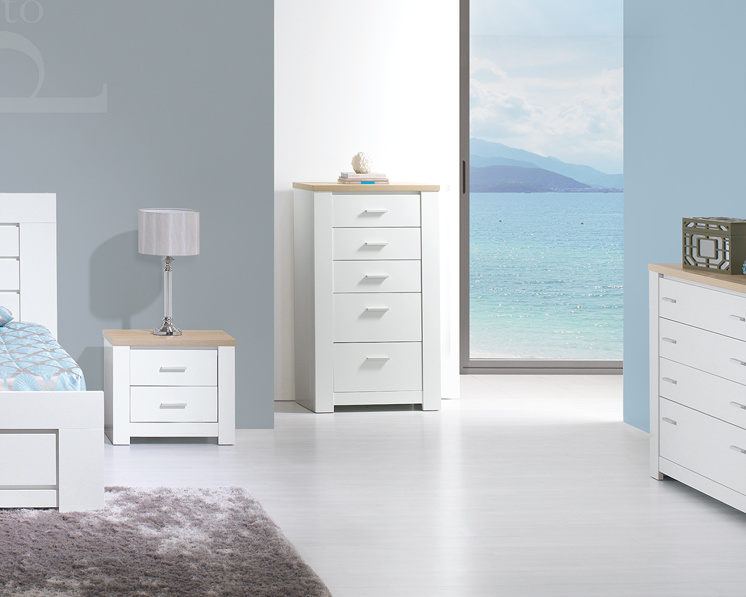 O camiseiro Florença, com 5 gavetas, é o seu aliado para conseguir um quarto organizado com um ambiente tranquilo e relaxado.
