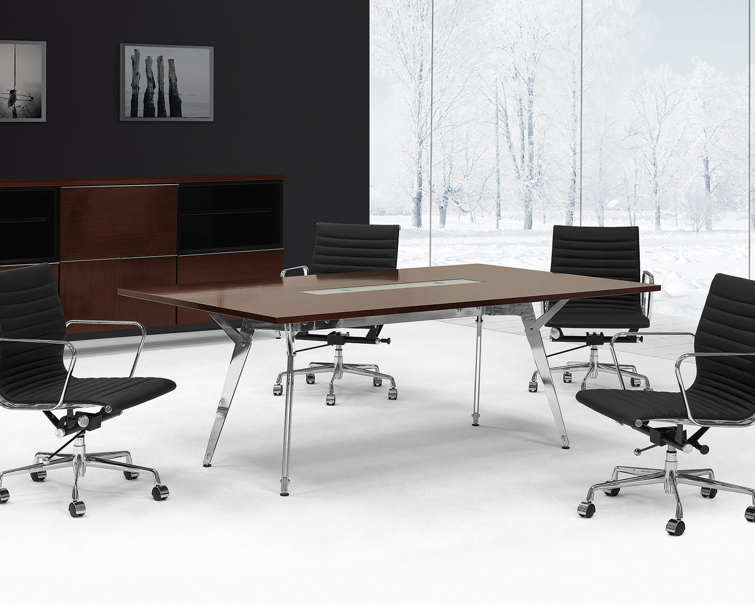Com um design sofisticado, com realce para as elegantes pernas de aço, a mesa de reunião Luk transforma qualquer espaço num local de trabalho convidativo e confortável. Com postiço de vidro fosco com furo para passagem de cabos. Disponível em diversos acabamentos da estrutura e tampo.