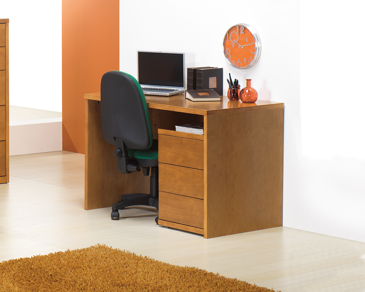Funcional e prática, a secretária Âncora proporciona-lhe o maior conforto para estudar ou trabalhar. Com linhas depuradas e acabamento pinho mel, integra-se facilmente em qualquer tipo de decoração. Possibilidade de adicionar bloco lateral de 3 gavetas.