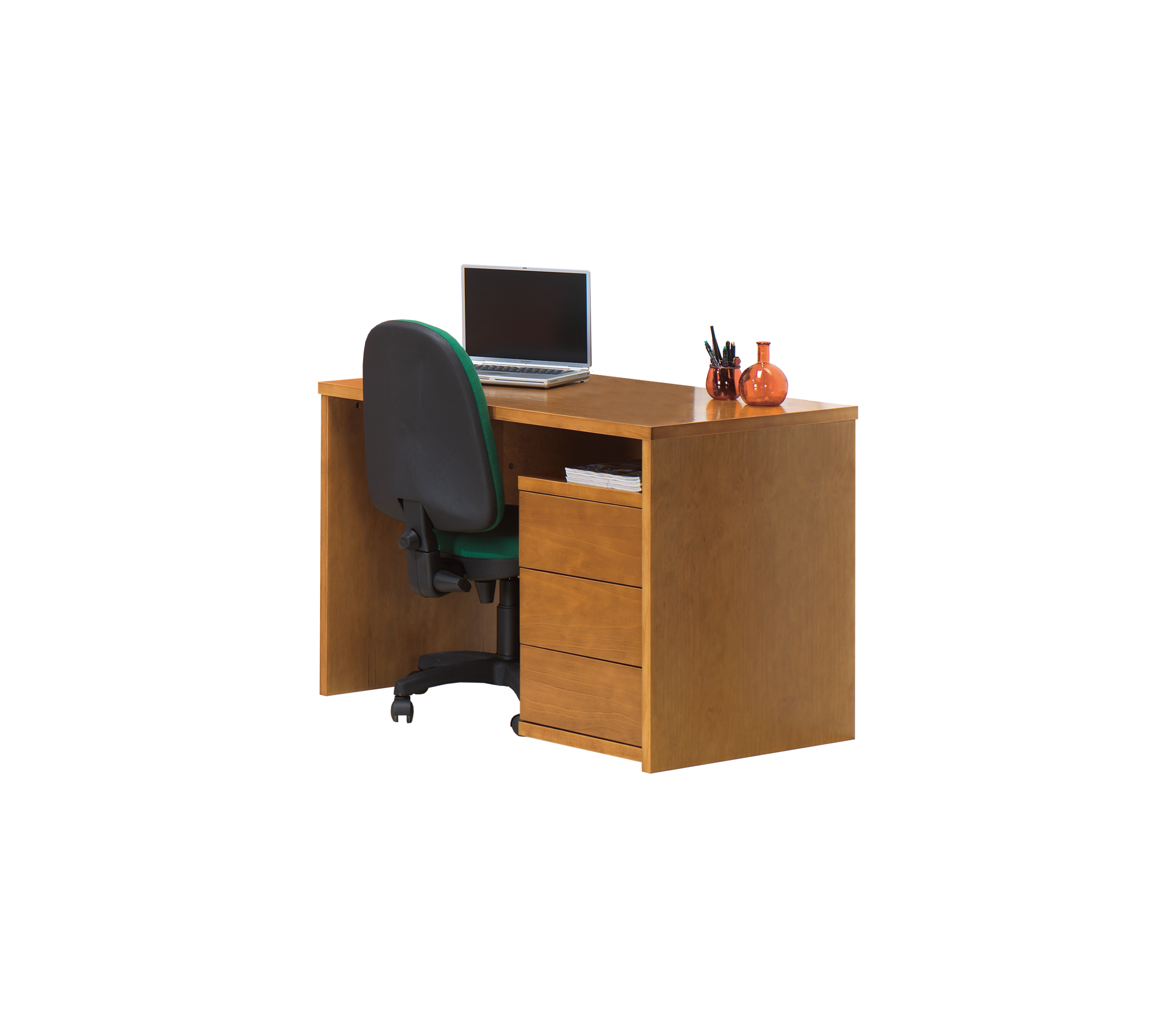Secretária simples com possibilidade de integrar bloco com 3 gavetas