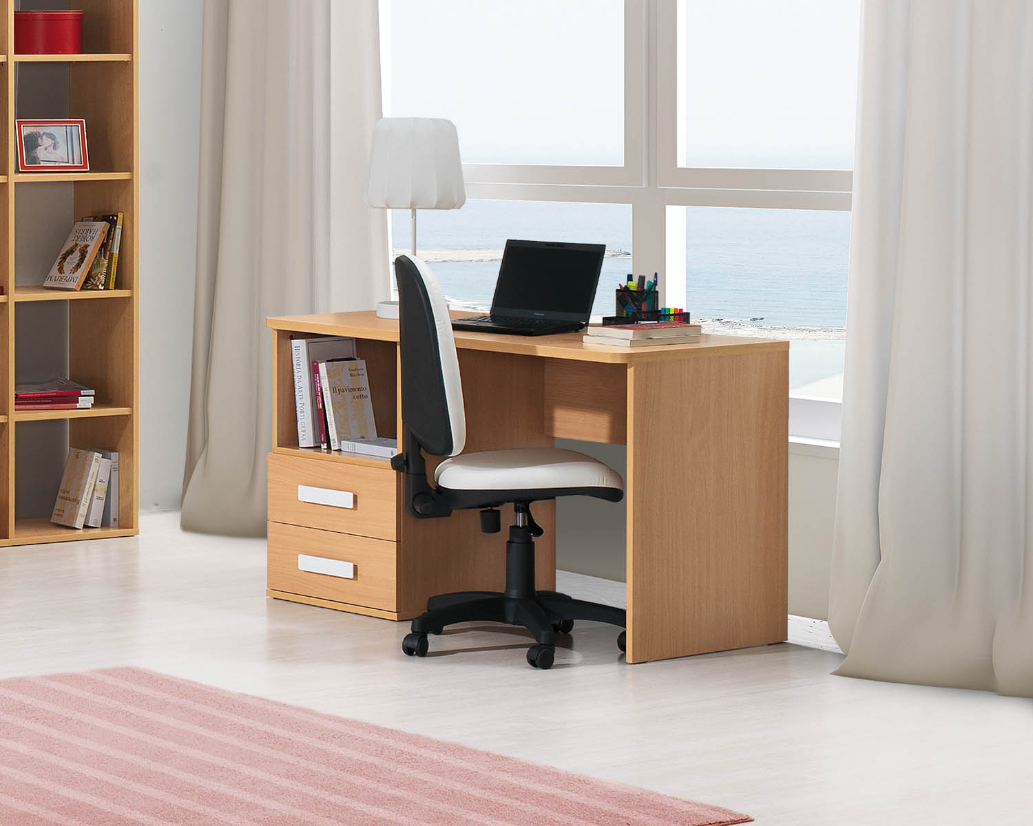 Funcional e prática, a secretária Play é o complemento ideal para um quarto de estudante. Com 2 gavetas, linhas direitas e inúmeras combinações de acabamento possíveis, desde branco ou folha de faia, com pormenores em rosa ou em azul, dá ao quarto um toque de cor, tornando-o mais divertido.