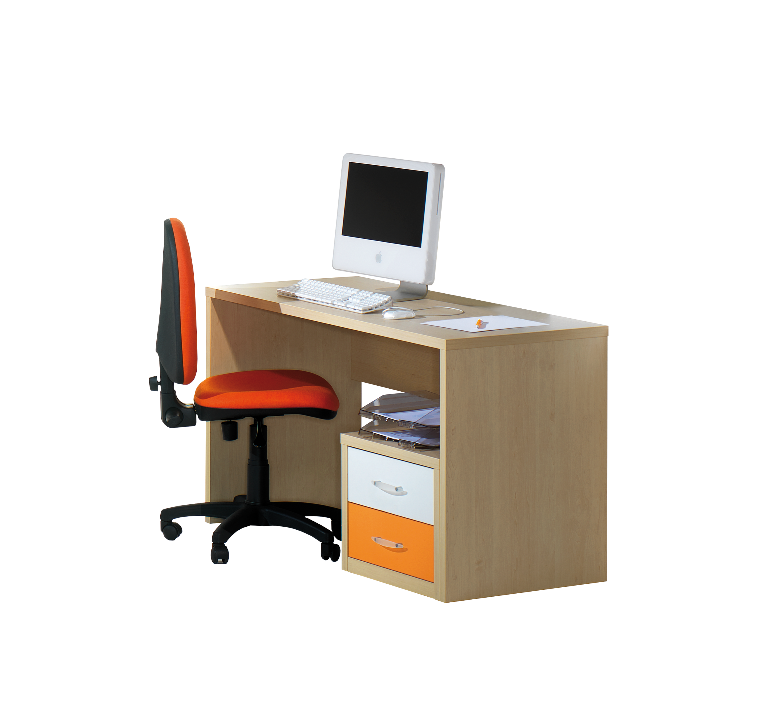 Funcional e prática, a Secretária simples Kids é o complemento ideal para um quarto de estudante. De linhas direitas e inúmeras combinações possíveis, desde branco, faia ou maple, com pormenores nos tons verde, laranja, vermelho, azul, lilás ou rosa, dá ao quarto um toque de cor, tornando-o mais divertido. Com possibilidade de adicionar bloco de 2 gavetas.