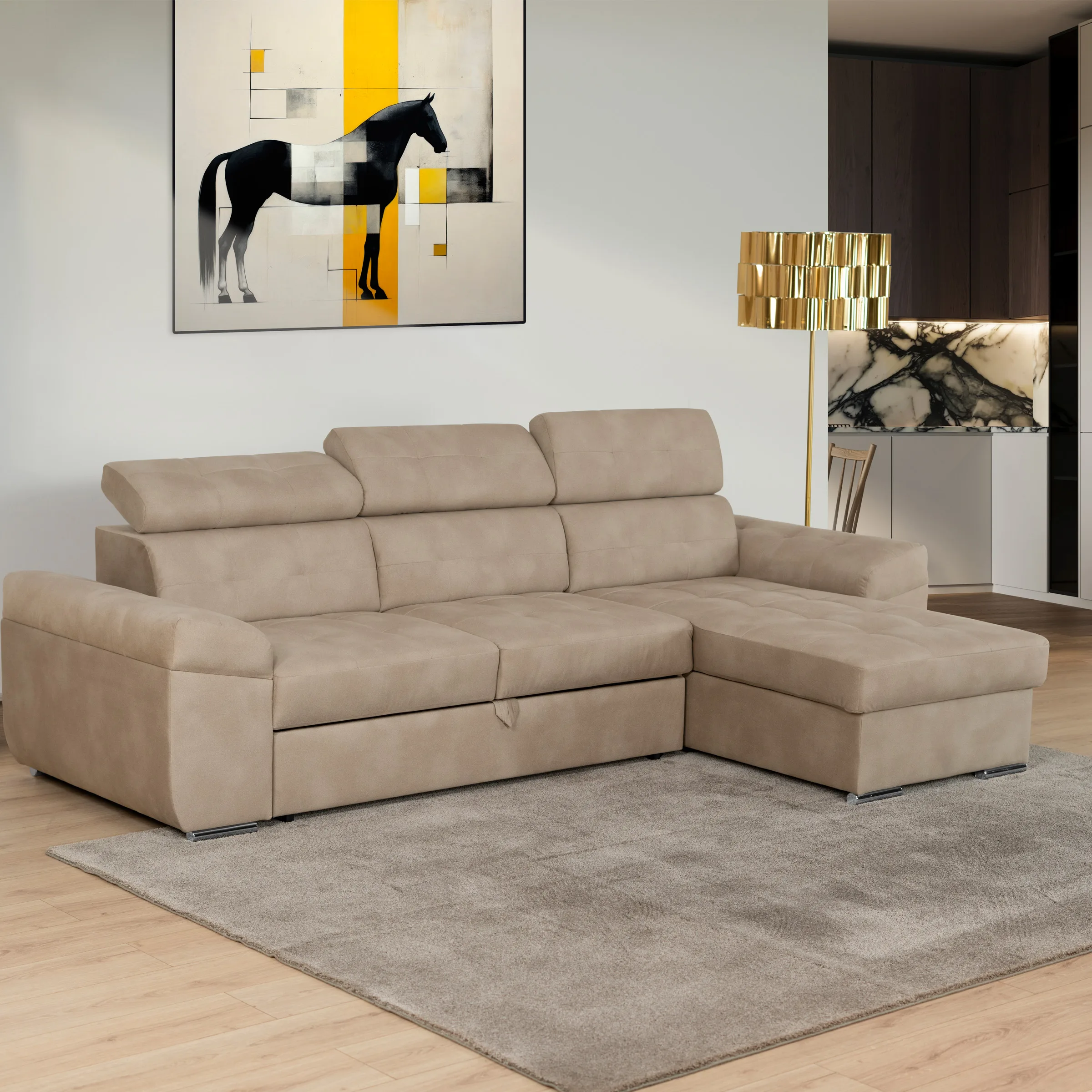 Sofá de 3 lugares com costas reclináveis, cama elevatória e chaise longue