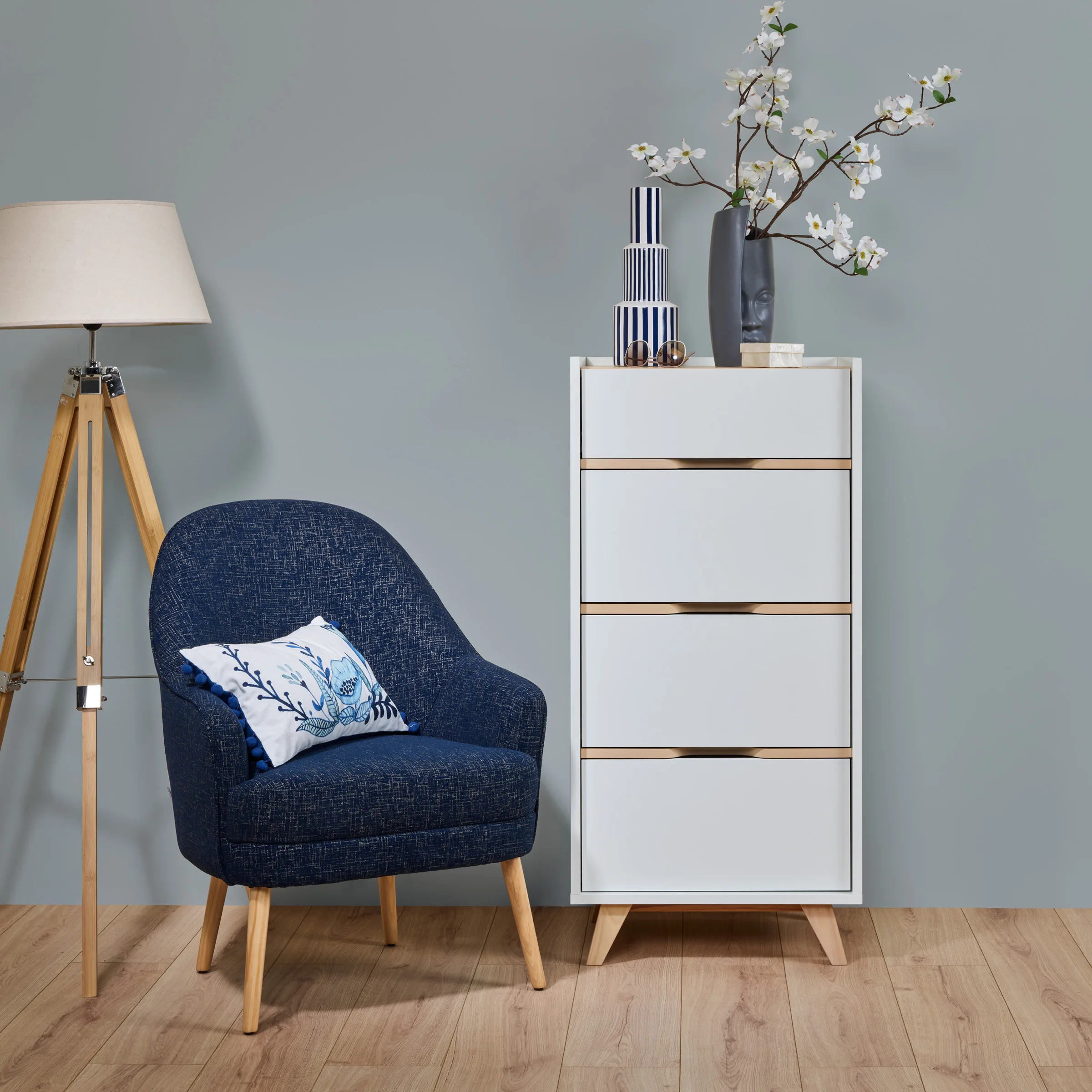 - O design nórdico faz desta peça a aposta segura para completar a decoração de um quarto com ambiente tranquilo e organizado.