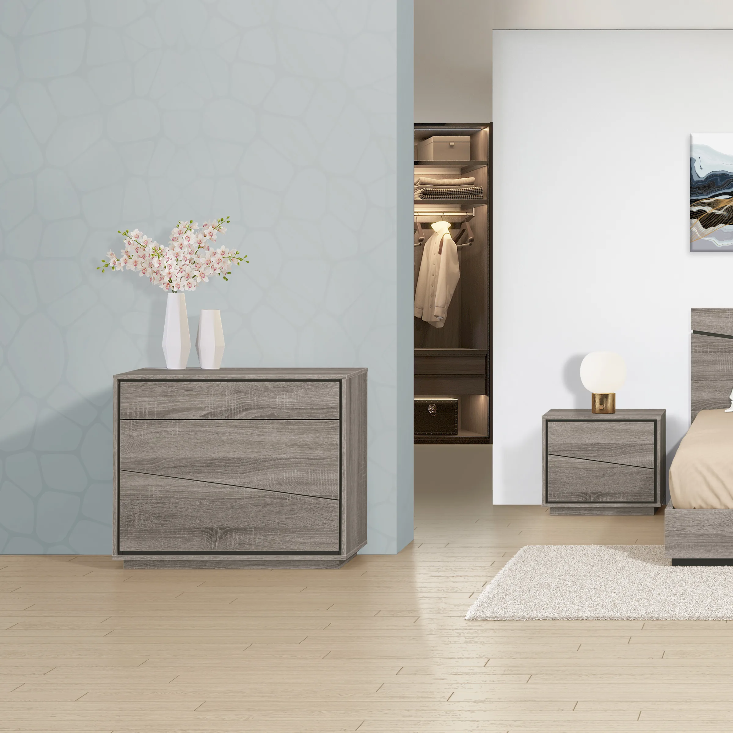 - Carvalho cinza com detalhe preto ou carvalho natura com detalhe branco? É ao seu gosto!
