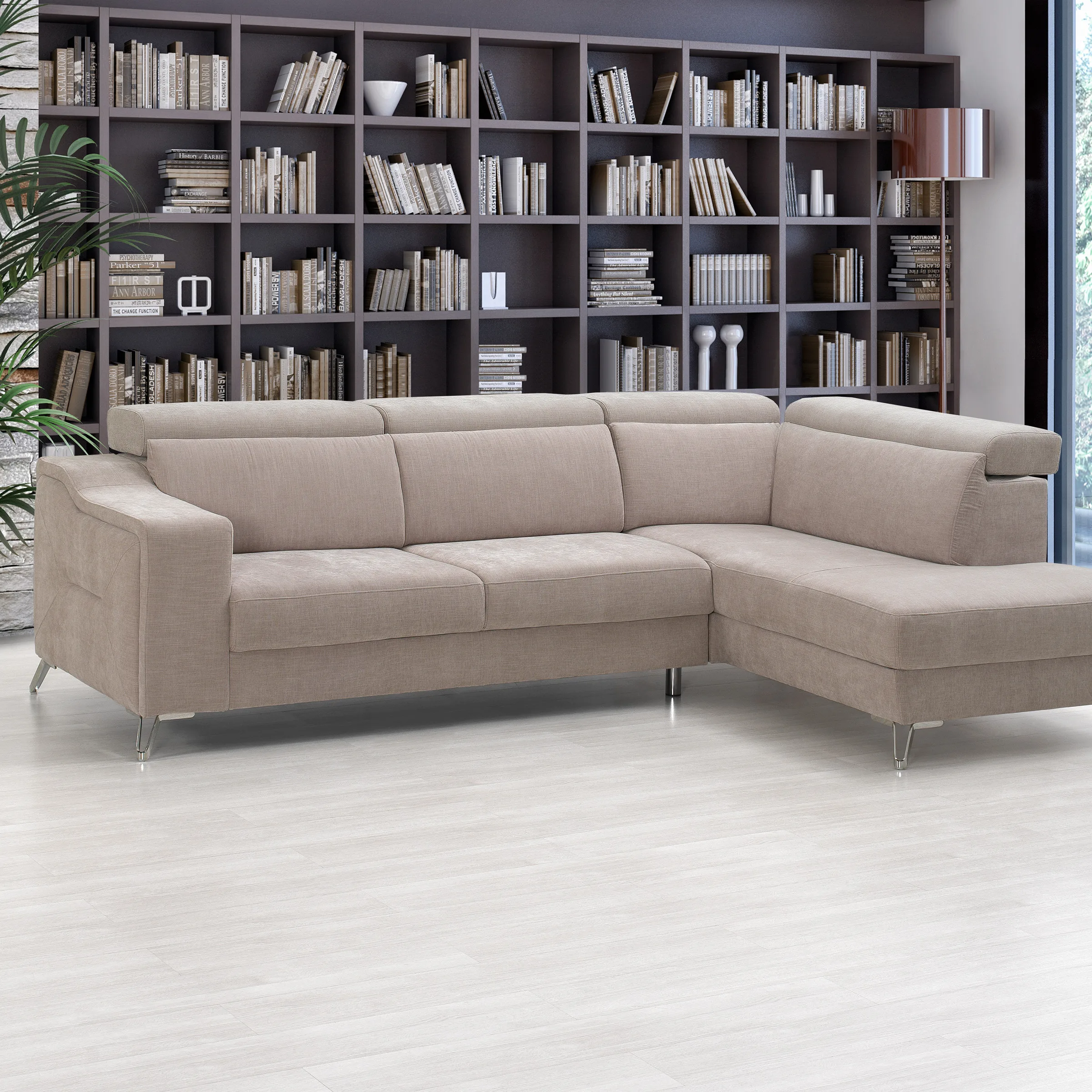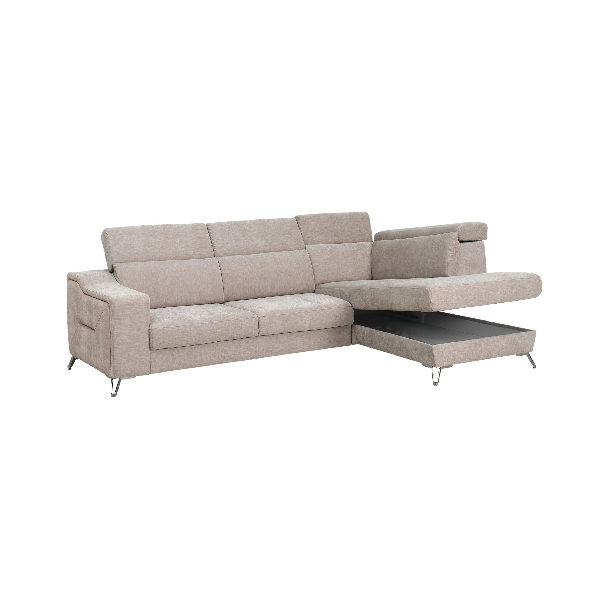 - Com costas reclináveis e chaise longue com baú de arrumação.
