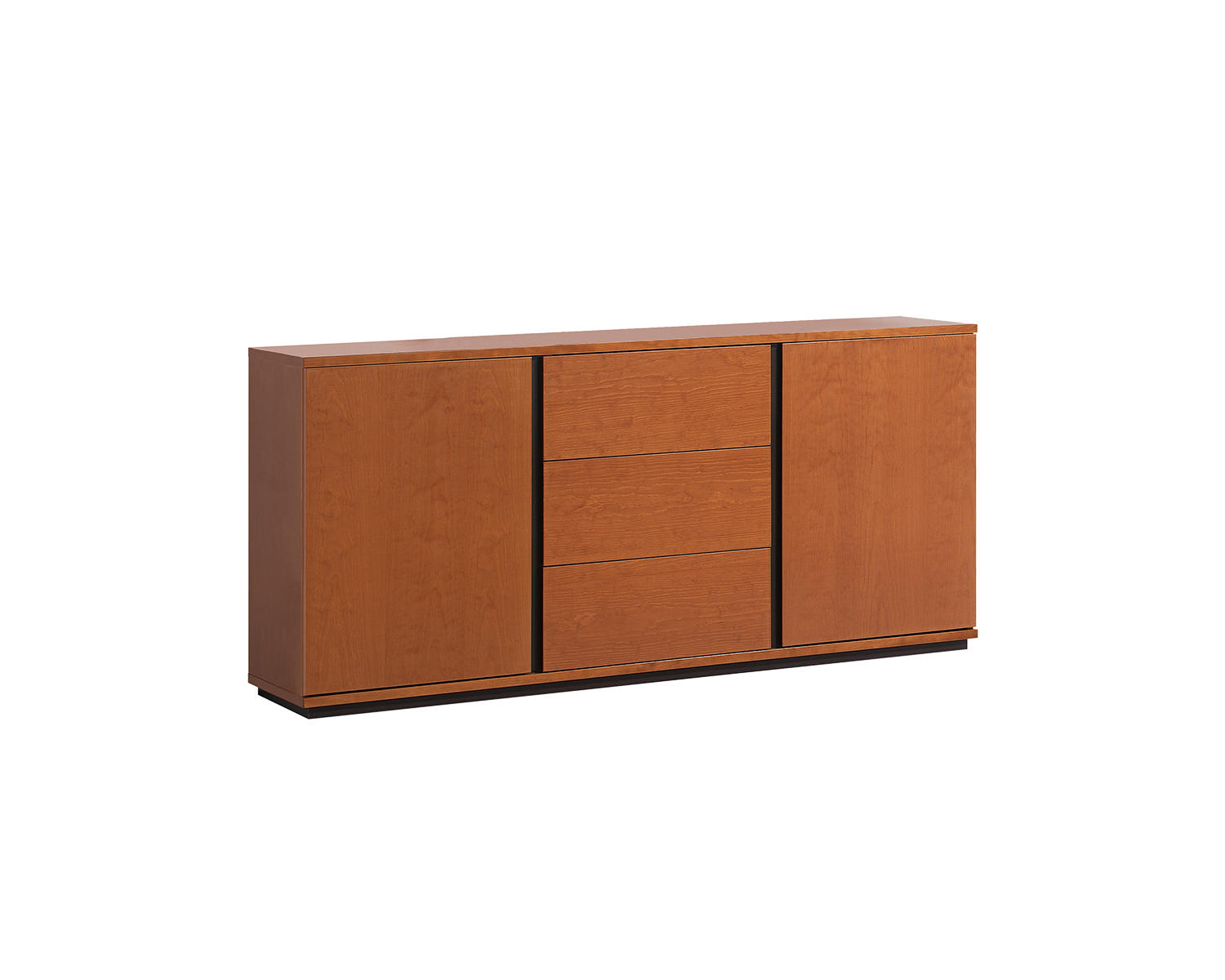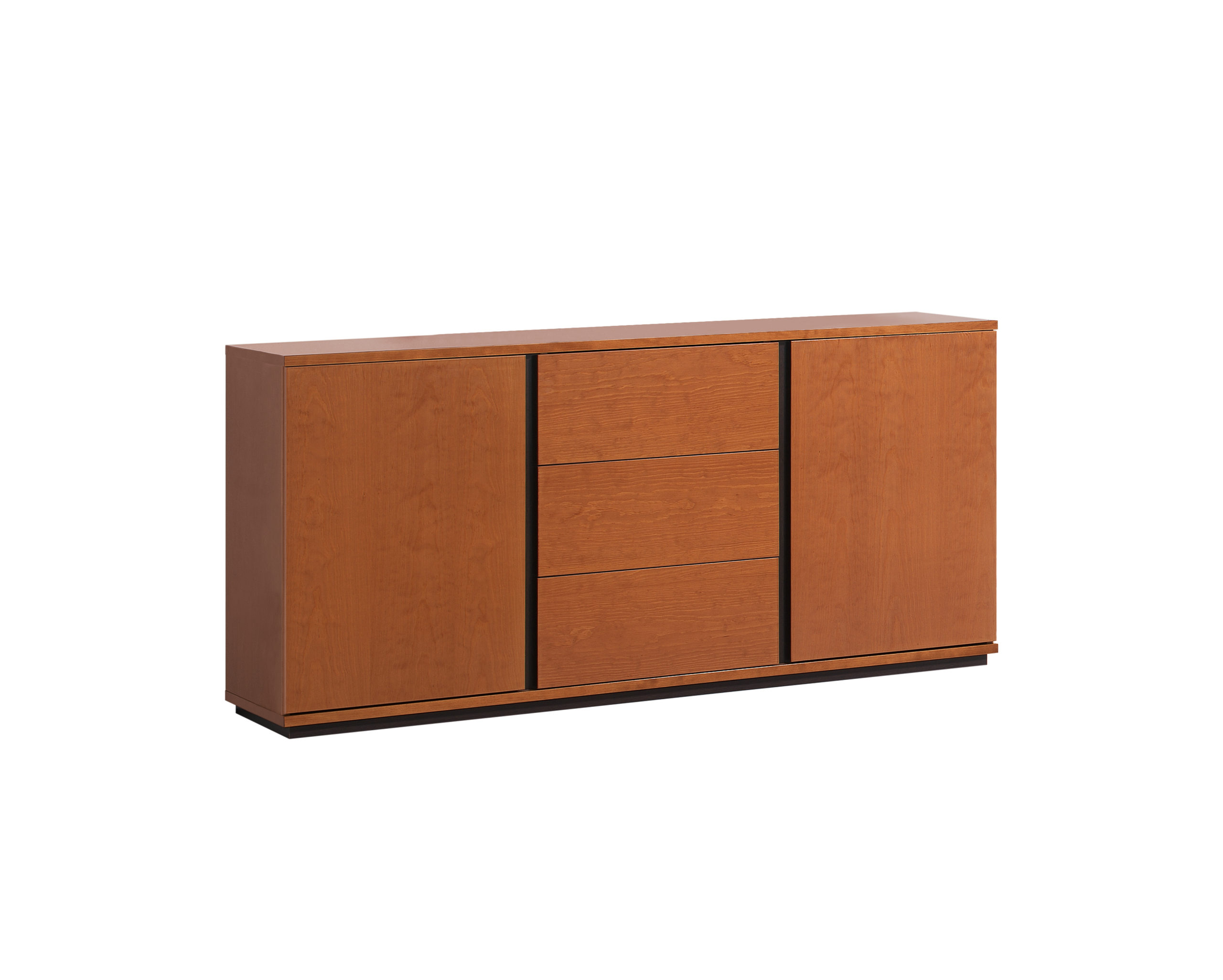 Um aliado em duas frentes: arrumação e decoração! Aparador de linhas direitas, com duas portas e três gavetas, onde predomina a sobriedade do pinho mel reforçada pelo detalhe em tom wengué. É funcional e elegante, com um design sofisticado e contemporâneo.