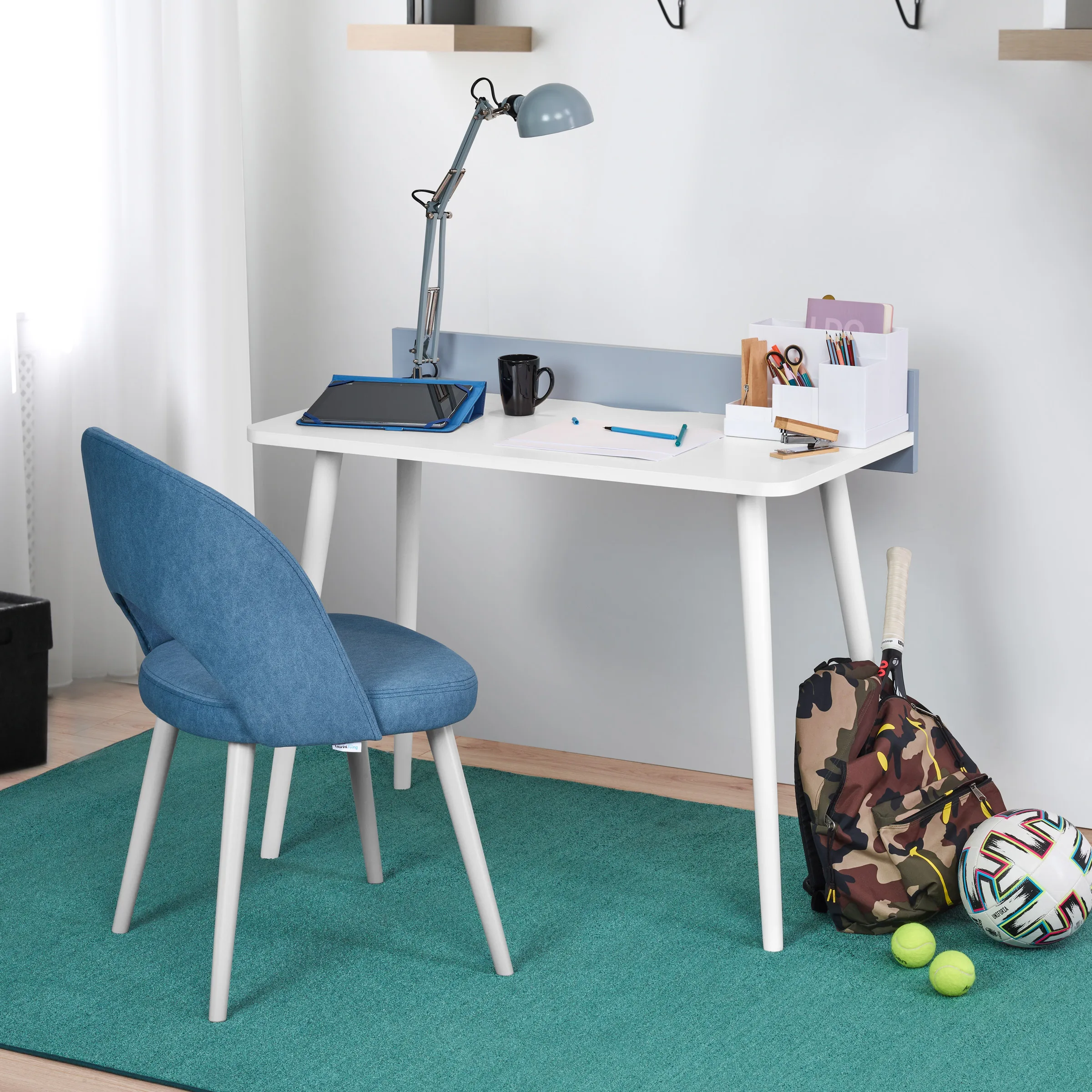 - Integra facilmente um ambiente de quarto, de sala ou de escritório.